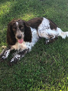 SAYDEE was my first girl and she's a SPROCKER SPANIEL even though I wasn't certain of that when I bought her I was told she was the 'runt' English springer Spaniel. Saydee blessed us with 5 'sprocker' litters and is now retired on the farm and she's 7 years old.